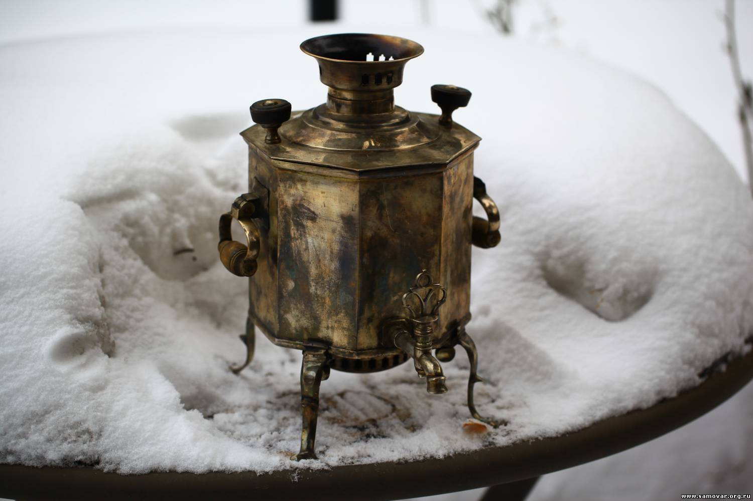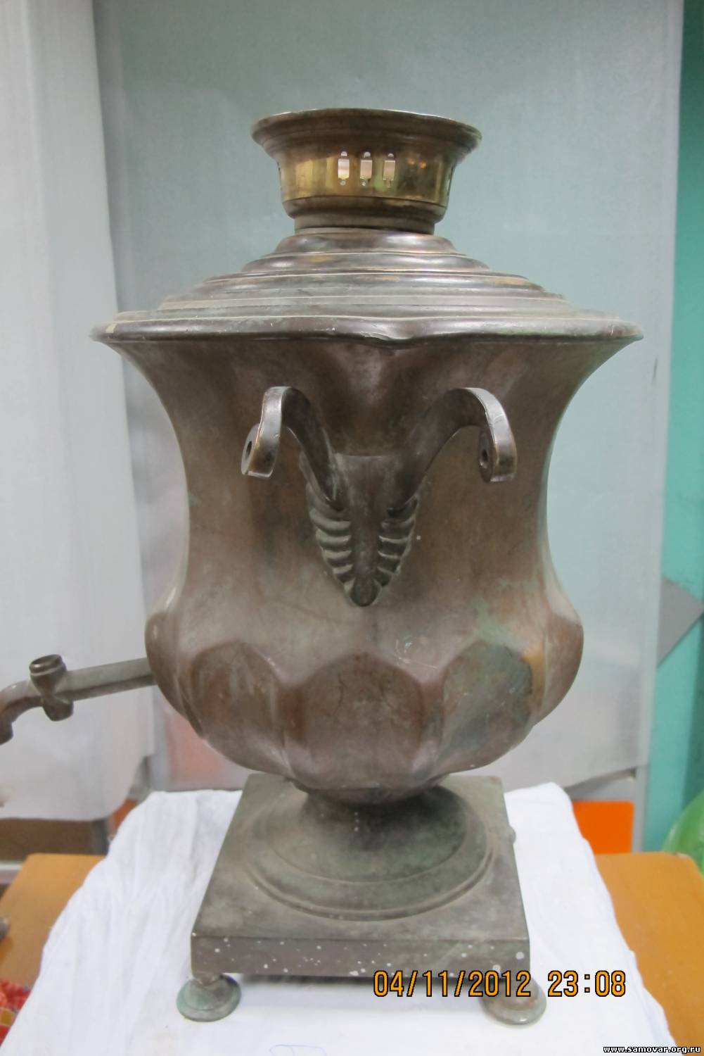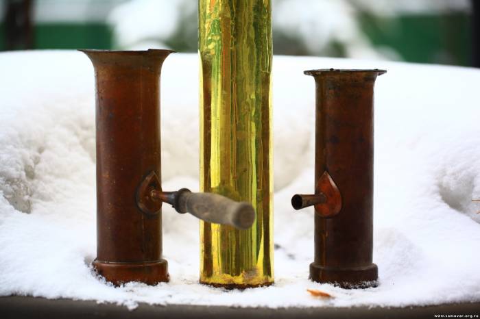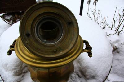 Цитата (Tytaev) Вроде у вас такой уже был? Был маленький, томпаковый. Литра на 2,5...Продал...Года два назад...Деньги нужны были... Цитата (Tytaev) .У меня к вам вопрос-почему на самоварах ваших преобладает определенный цвет.Особенно после топки.Вы чем то чистите?Радужные разводы. После топки? Радужные разводы только на конфорках...т.к. их не снимаю. А на каких самоварах Вы имеете ввиду? Я вроде ничего уже давно не чистил... Цитата (Мишаолигарх) SR990, поздравляю с очередным Маликовым ). А может и с внеочередным )) Спасибо! С ВНЕочередным!!! Цитата (Мишаолигарх) Латунь или томпак ? Во...Хороший, Правильный вопрос!!! Латунный, стоящий рядом самовар, Отличается по цвету...Томпаковый Маликов (другой), так же Отличается по цвету... Я не с проста, поставил разные по качеству фотографии...Заметили... Шкурка показала, на ножке, что вроде латунь... Присмотритесь к вертку... По всей видимости он разболтался со временем и его не паяя!!! закрепили доп. кусочком латуни...Держали, как я понимаю, плоскогубцами, патина стёрлась, цвет - томпак. Будем реставрировать - всё и увидим!!!  Добавлено (05 Янв 2013, 18:56:50) ---------------------------------------------