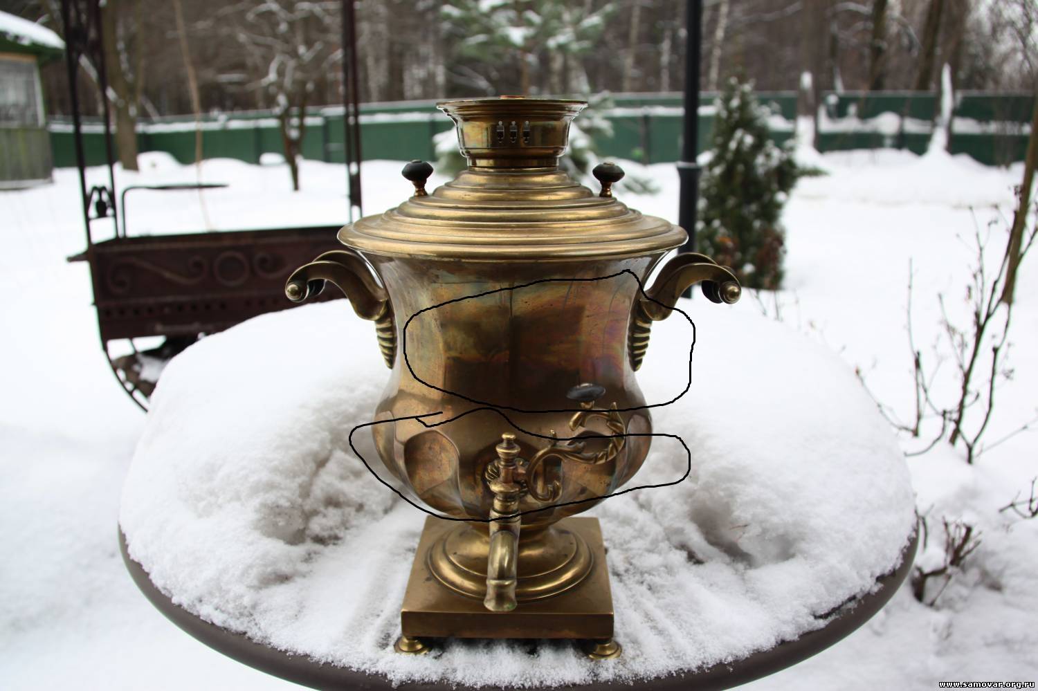 Цитата (Tytaev) Я имел ввиду такое как на фото. Понятно. этот самовар ещё с утра был на рынке в Измайлово, там и взял. Топить даже не пробовал, залил, из под репейка закапала вода. Внутри ТАКОЙ слой накипи, что паять его ТОЧНО никто не паял...Думаю, такие радужные разводы, возможны только от времени и состава металла. |