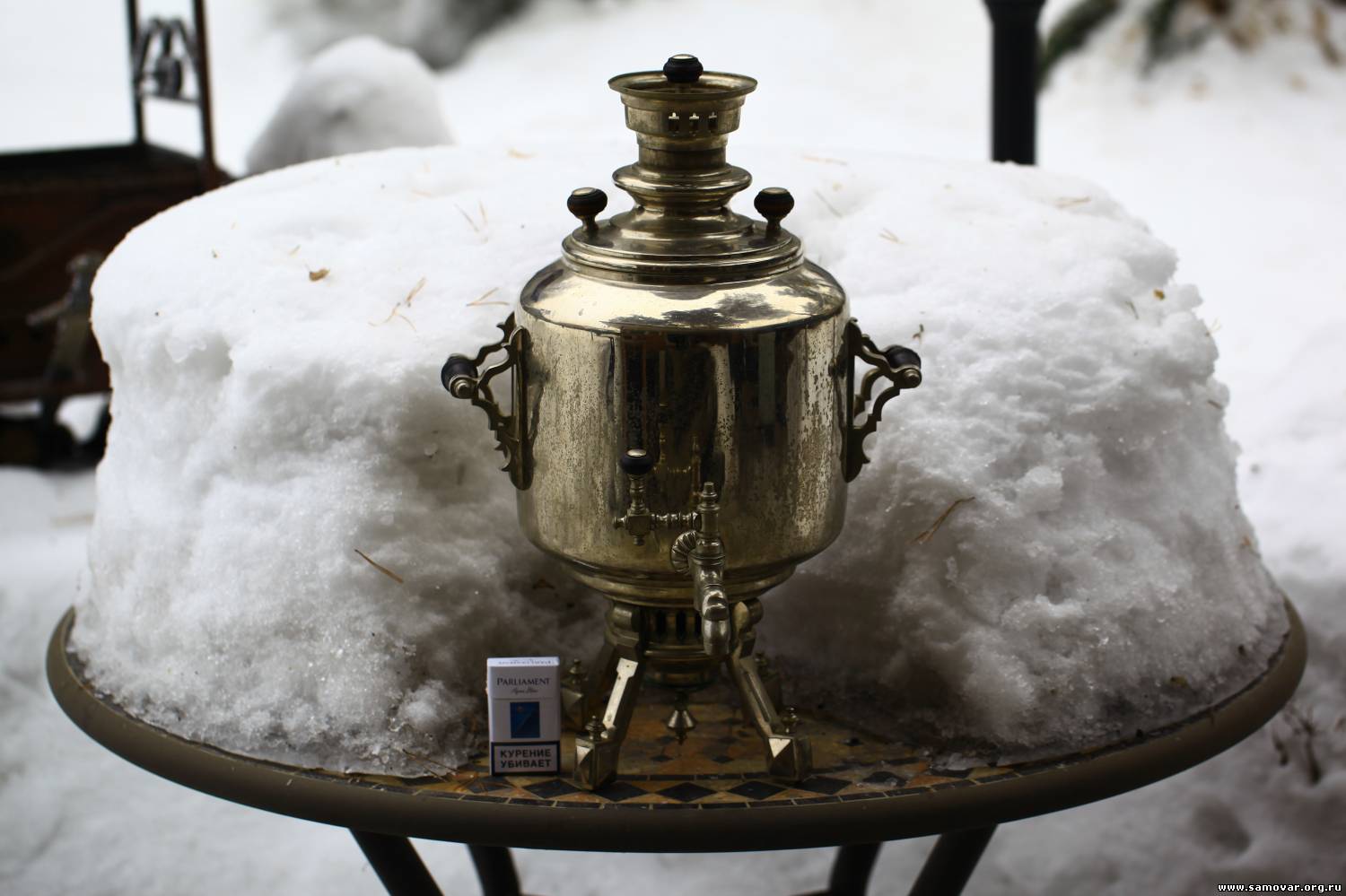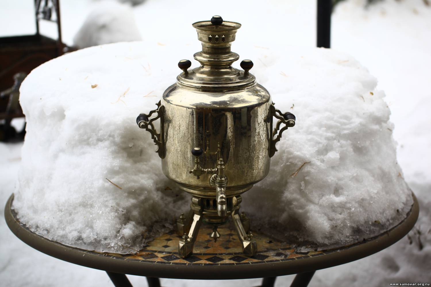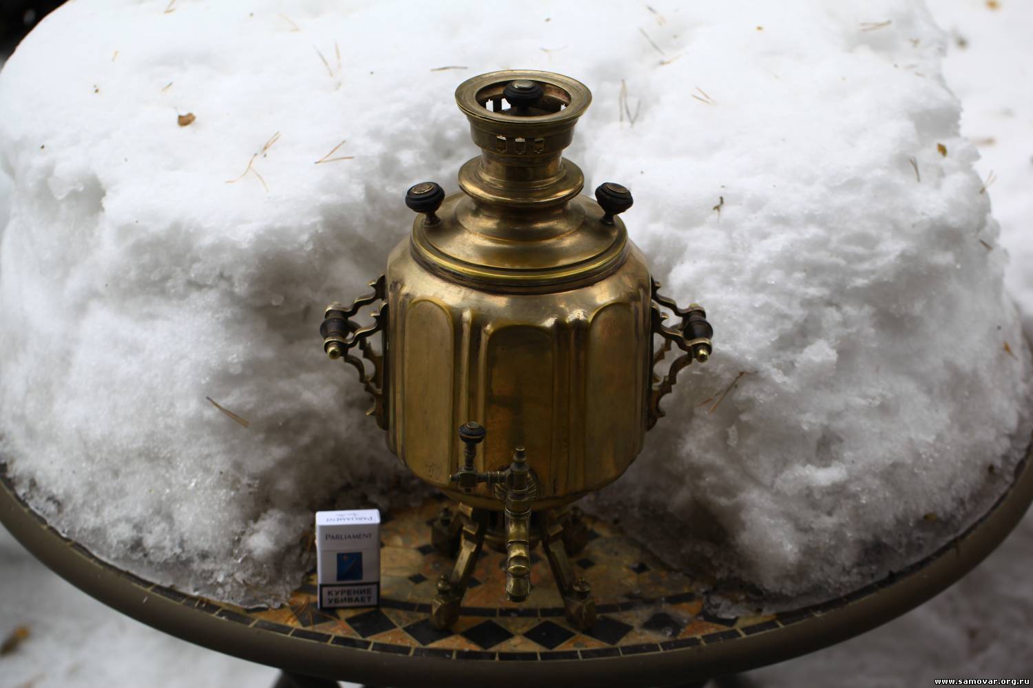 Зато уверенно скажу, что гушилка не от него. Ну и там по мелочям - шишки и подшишки инородные. А в общем очень даже приятный и редкий самовар! Не у каждого в коллекции будет такой.