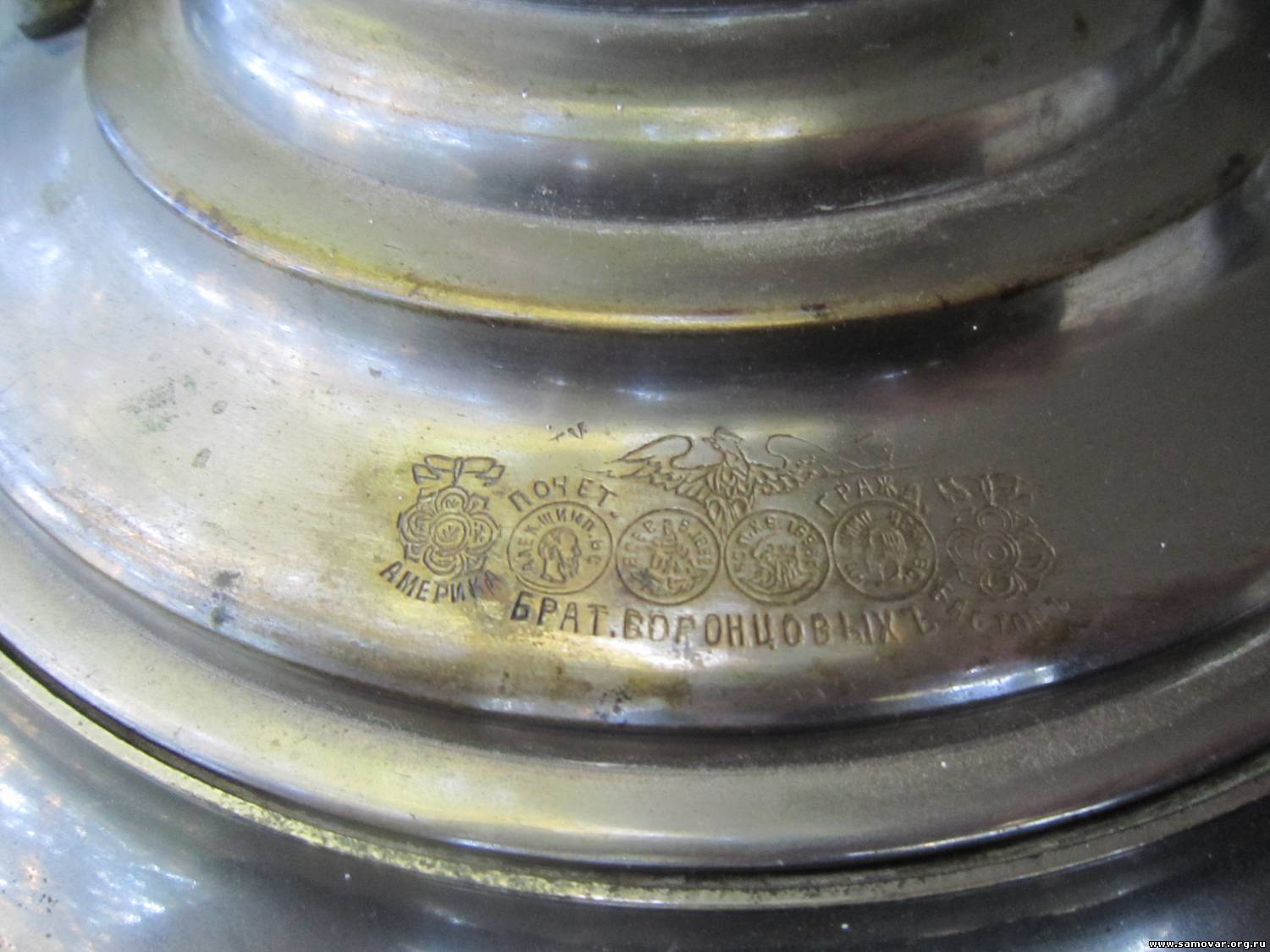 Quote (eldarr) Помогите оценить самовар Бр. Воронцовых. Кажется самовар из никеля или стали (?). Нигде ни следа бронзы я не нашёл. Это Ваш самовар? |