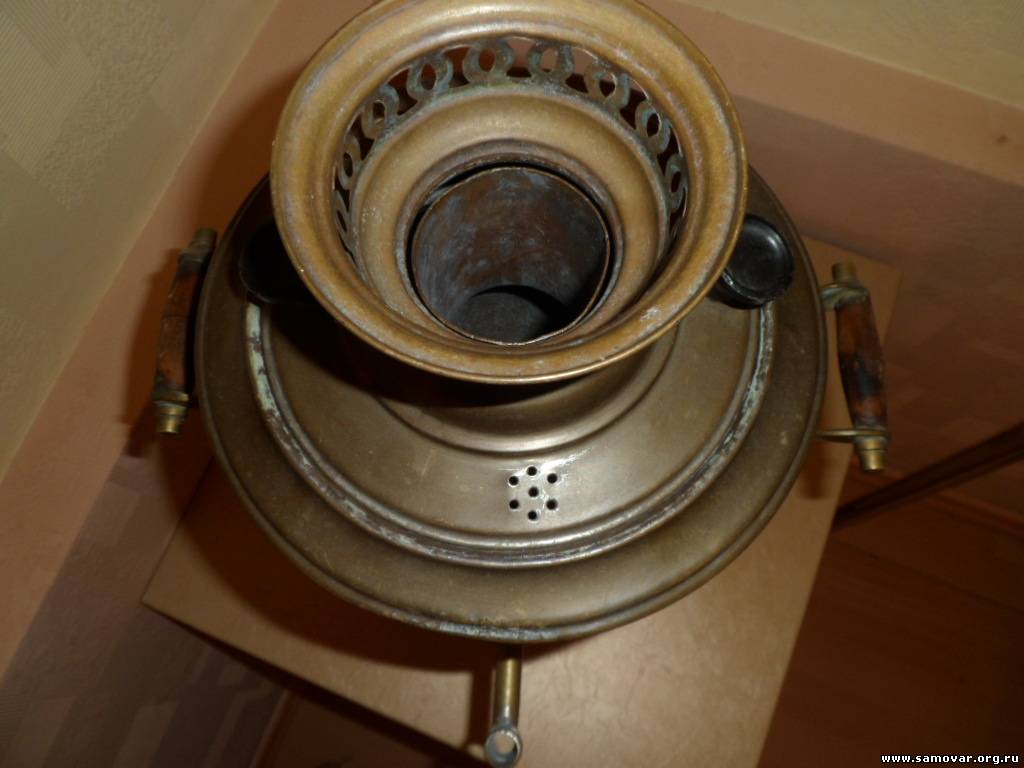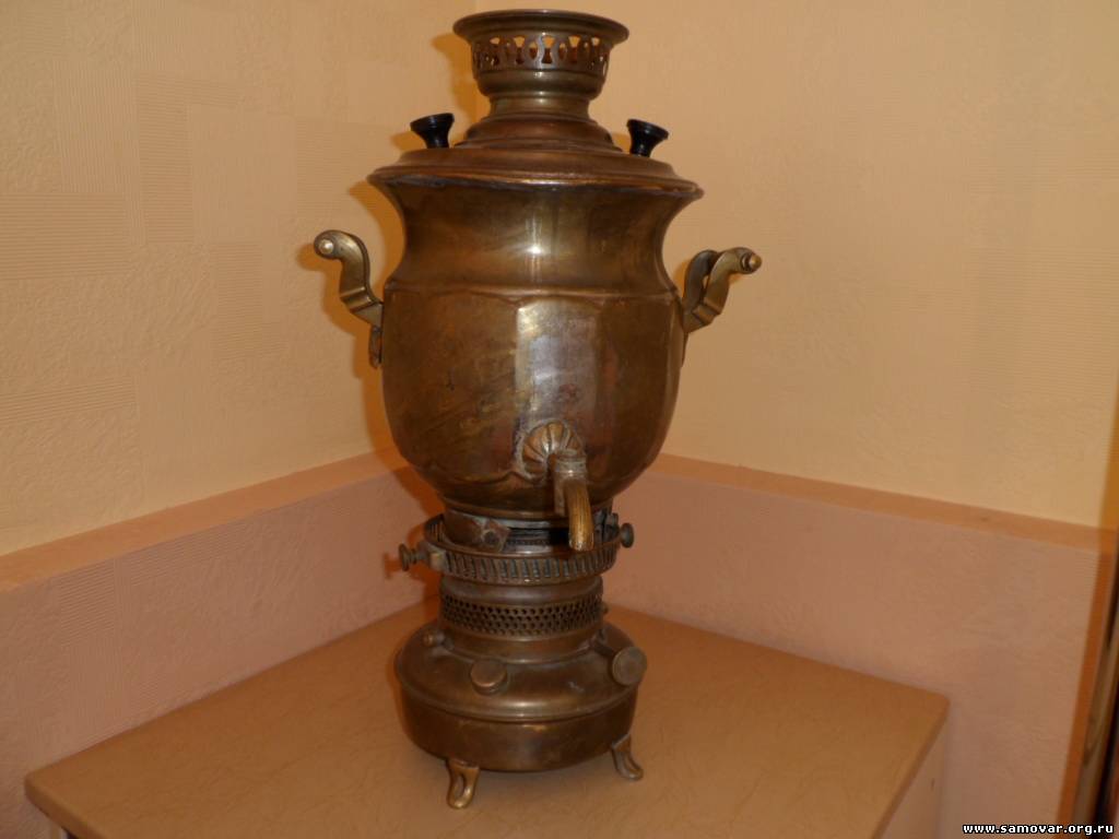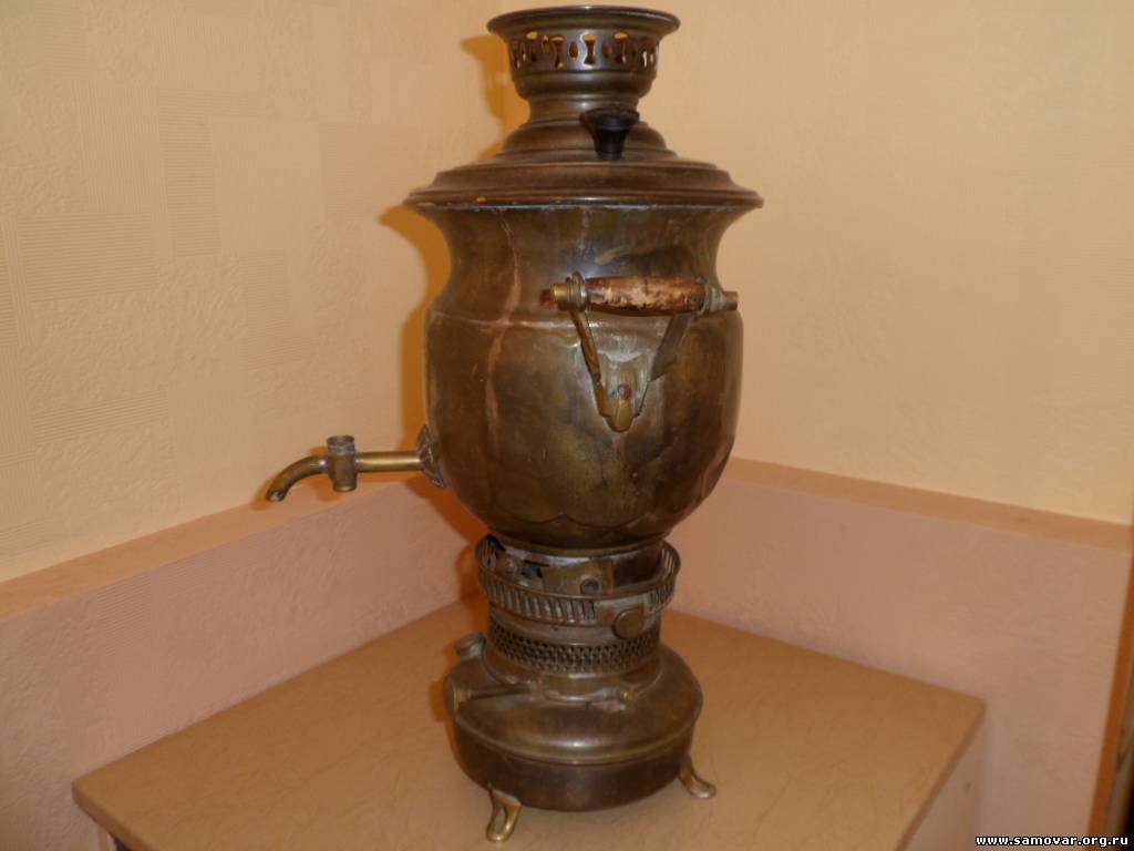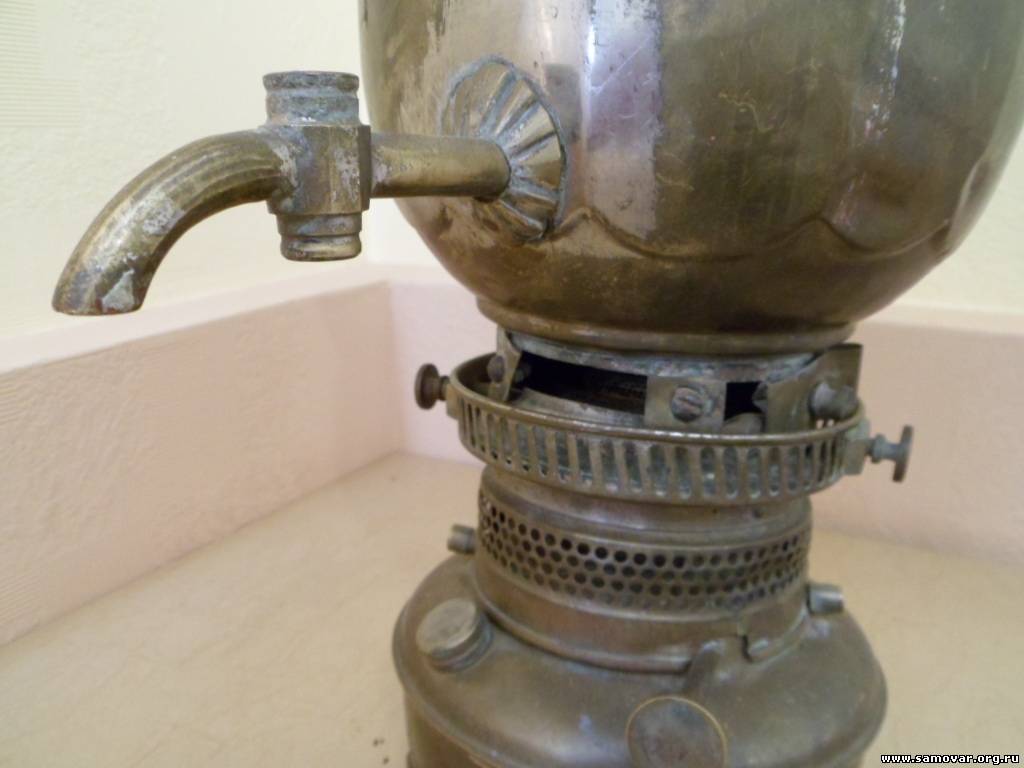 Это не керосиновый, а остатки спиртового самовара Бр. Шемариных. Основные части утеряны. Керосиновые самовары были только Тейле. В описании у Яхина допущена ошибка. Там под номером 92 можно посмотреть на полную версию данного самовара. |