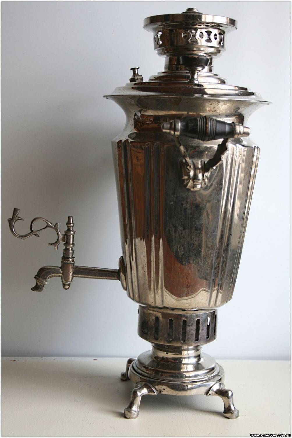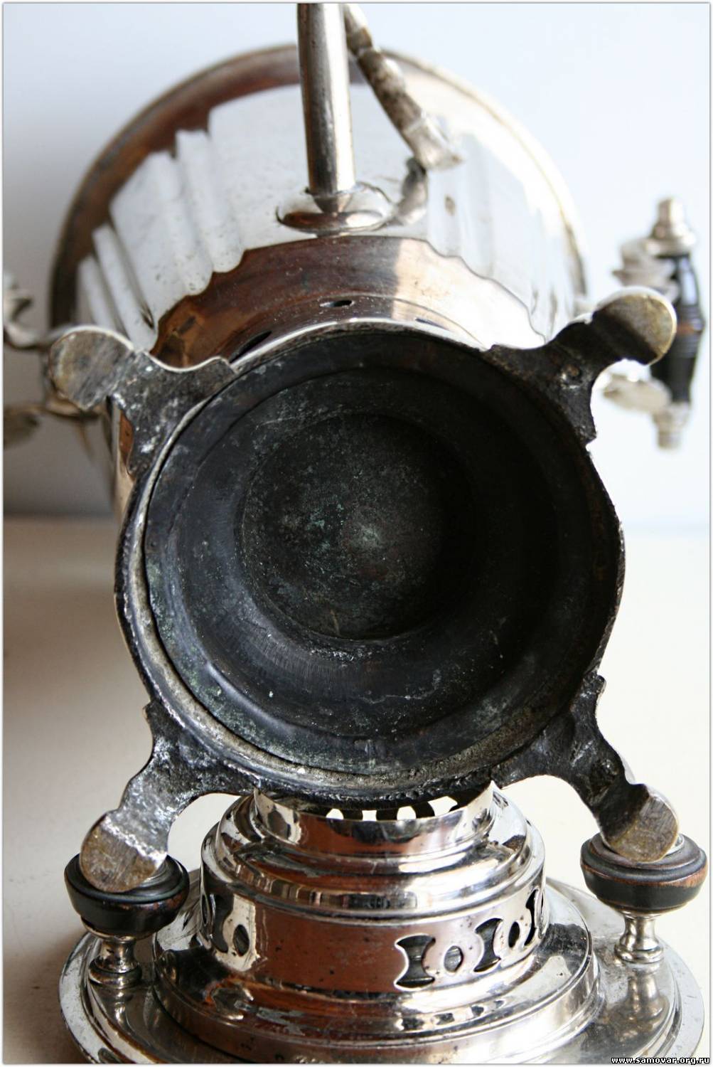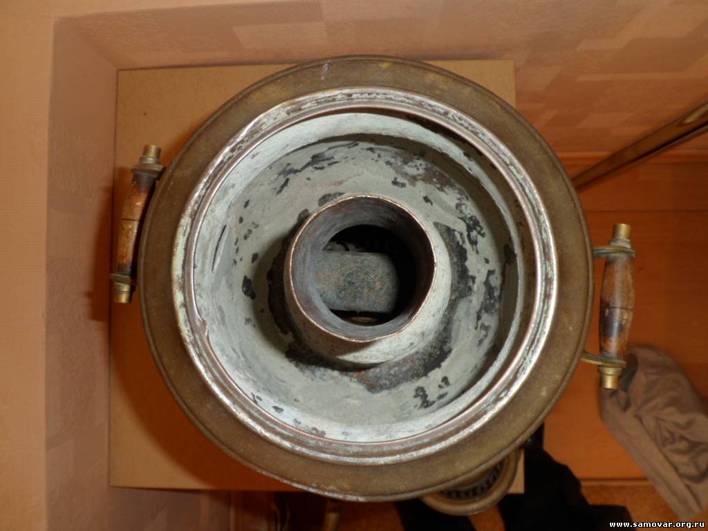 Это не керосиновый, а остатки спиртового самовара Бр. Шемариных. Основные части утеряны. Керосиновые самовары были только Тейле. В описании у Яхина допущена ошибка. Там под номером 92 можно посмотреть на полную версию данного самовара. |