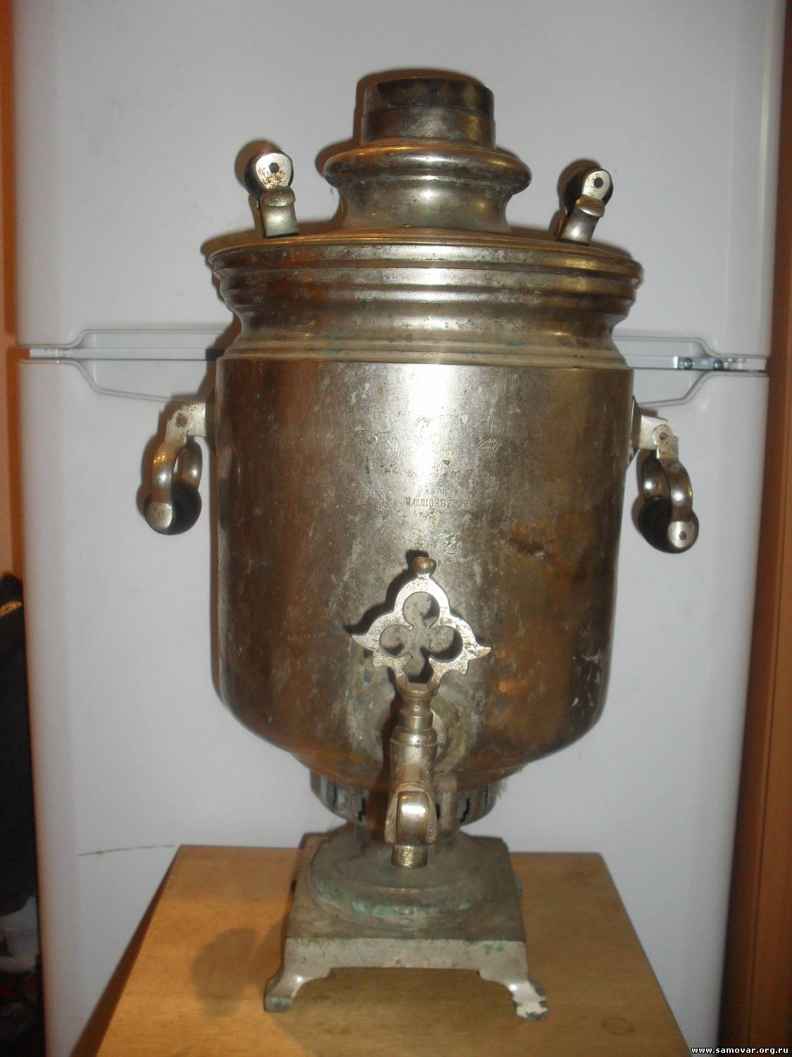 Продам самовар М.Слюзберга, 9 литров, не течет, есть небольшие вмятины, поялся кран. 6000р+почта.