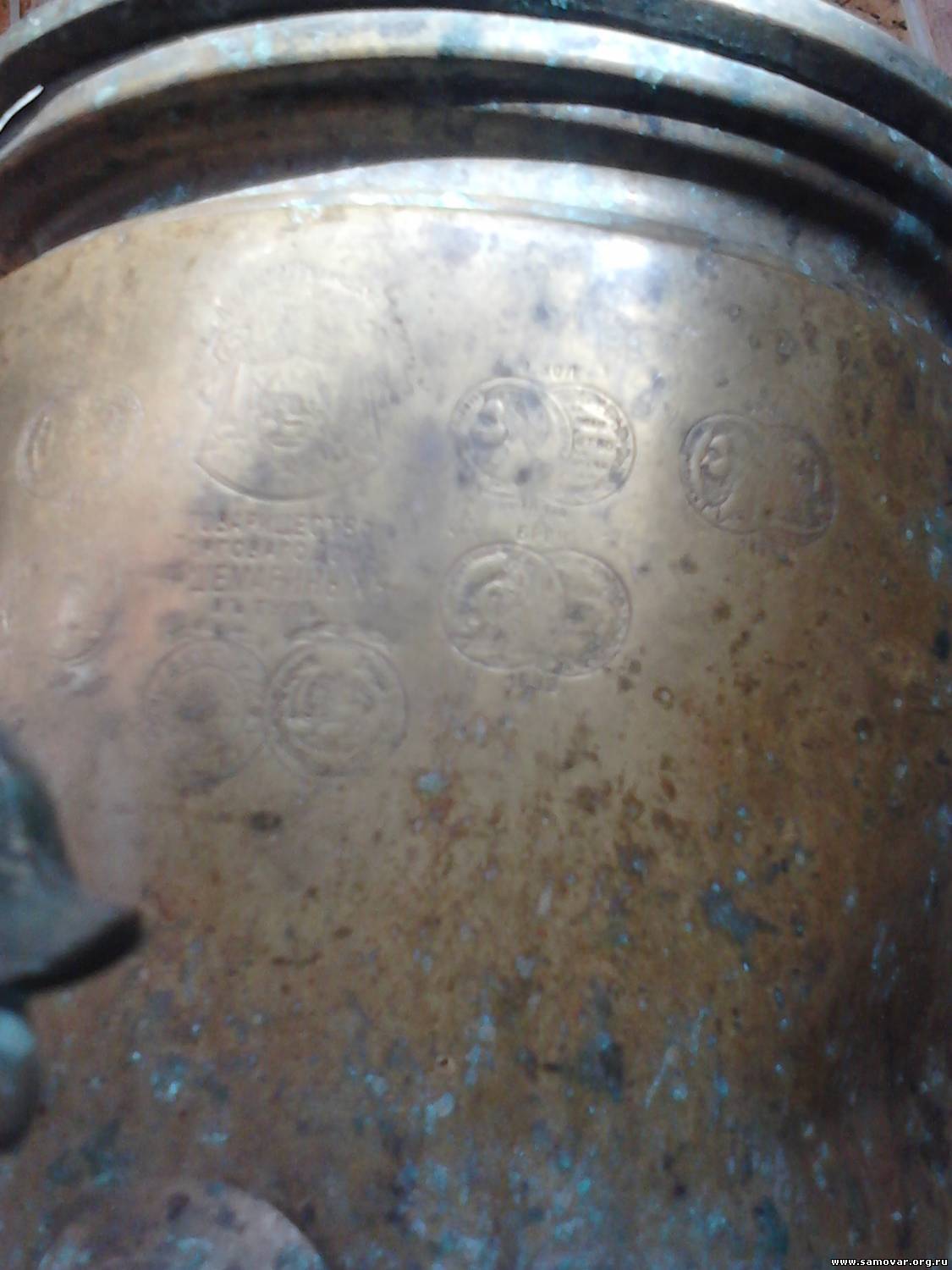 Высота 46 см до верхней точки..Полно медалей на тулове и на крышке.."Товарищество Торговый Дом Шемариных в Тулъ" Всё на фото,Лёгкая зелёная патина от окислов меди. Вмятины небольшие справа . Воду держит, трещин нет, всё родное..
