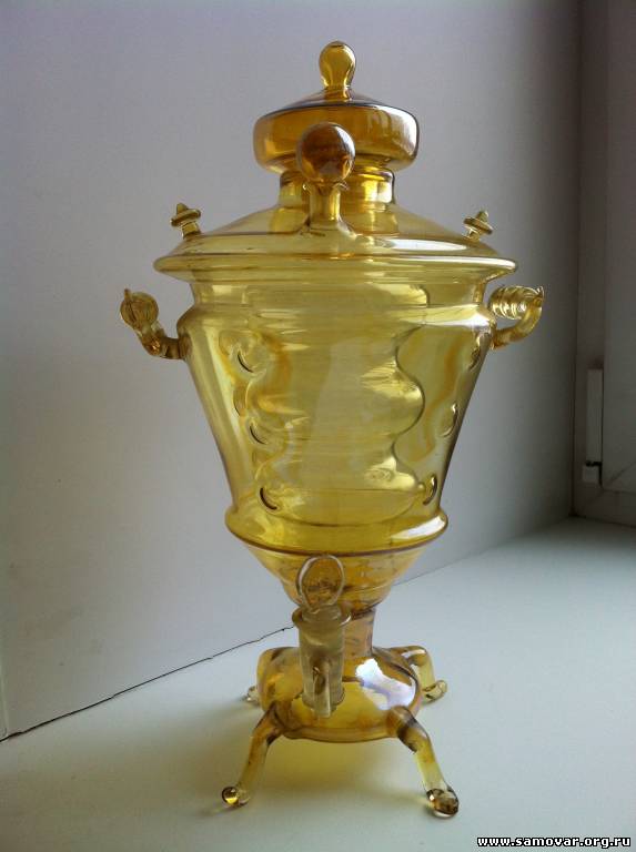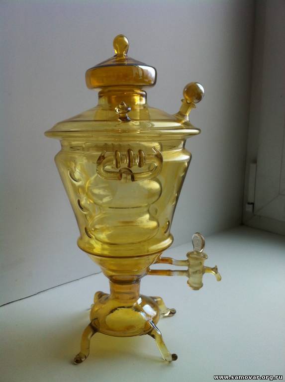 Внутри разделен на два сосуда, которые соединяются стеклянными трубками с носиком. Поворот кранчика закрывает одну или другую трубочку, позволяя наливать напиток из одного или из другого сосуда.