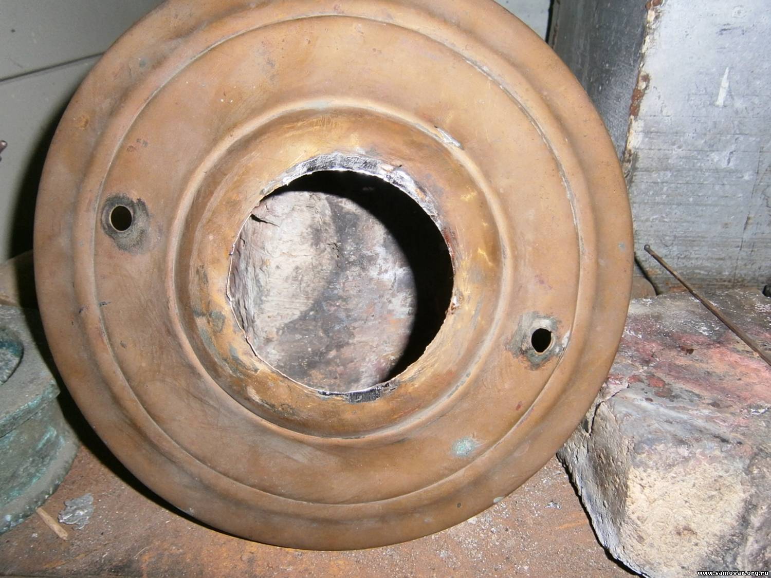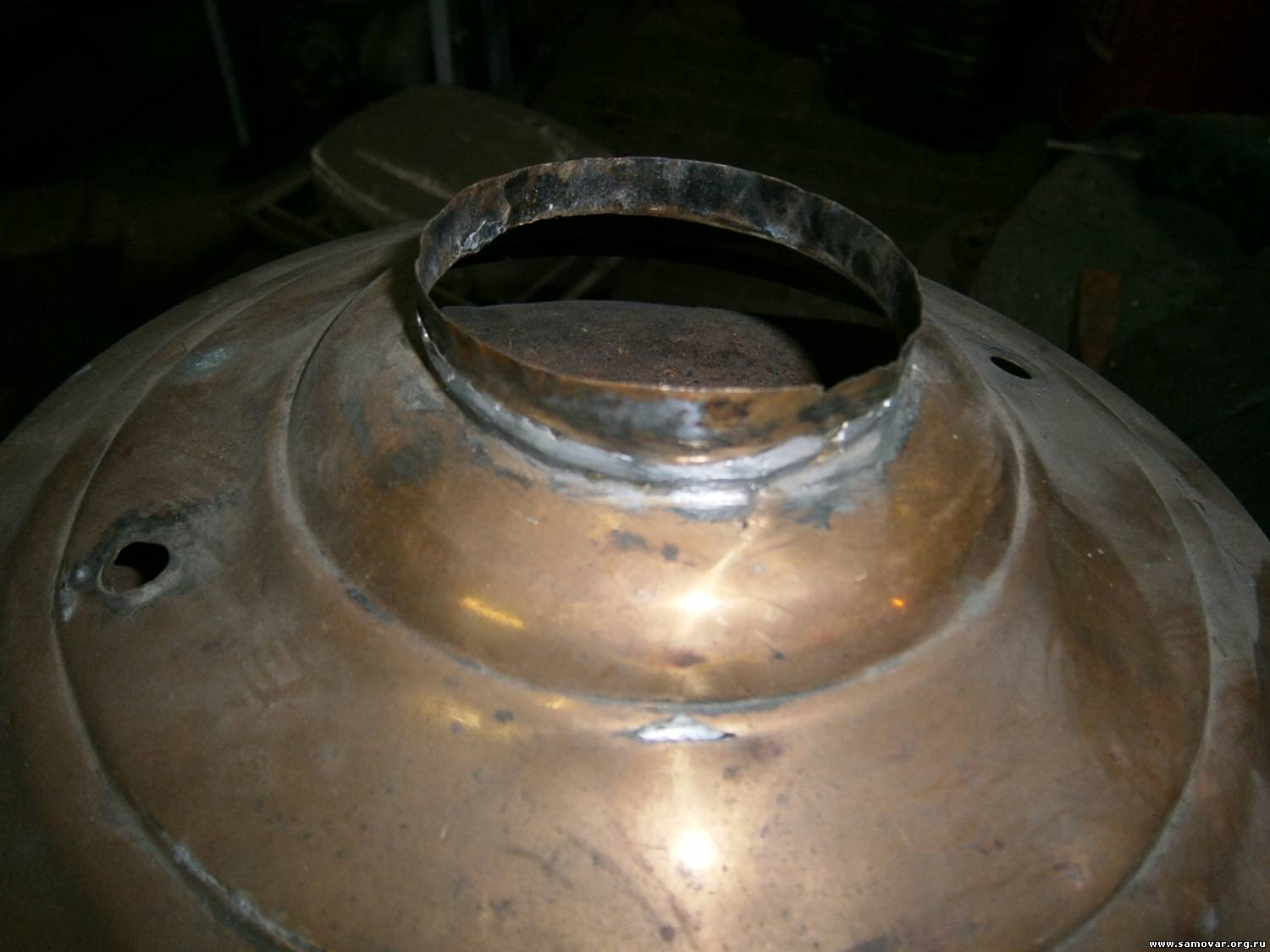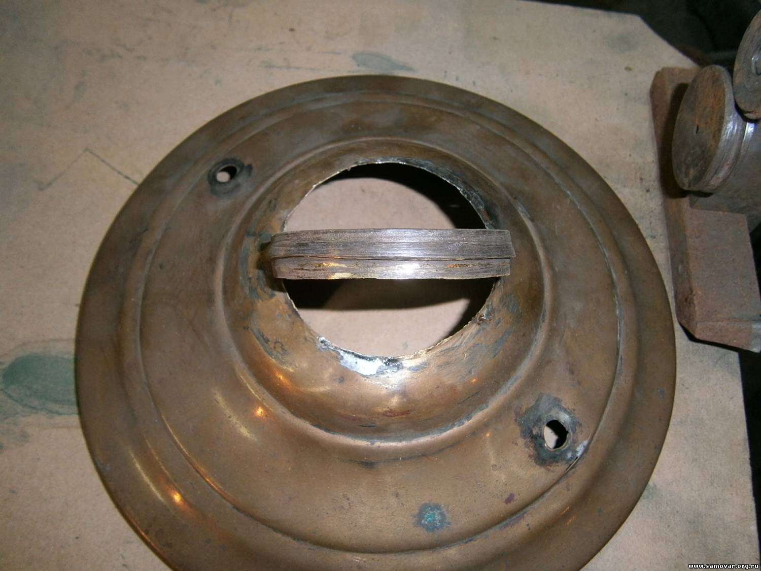 Цитата (Tytaev) Такое ремонтирую накладкой изнутри латуниевой портянки.Потом сверху(снаружи)заплавляю серебром.Пока спасало. Попробуйте, так же, протезом. Берете с сов самовара крышку. Обрезаете по кругу, чтоб остались медали и инициалы. Прокатываете по краю бурт как на баночных крышках. А, дальше как на примере. Пример взят так же, со старой крышки. Если память не изменяет, Полеков. |