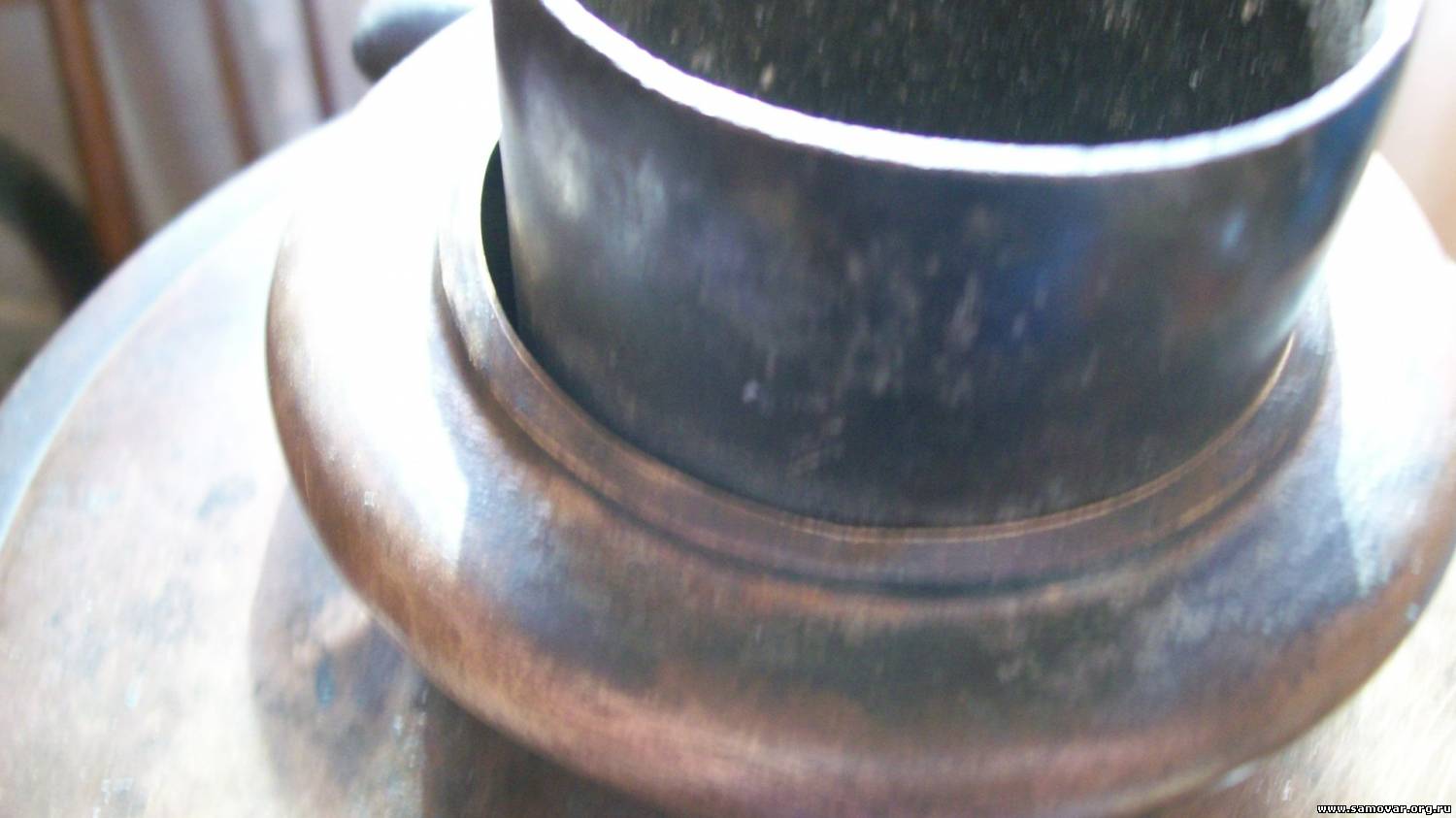 разве встречаются такие крышки на которых бурт горизонтально подходит к трубе.на всех моих самоварах на крышке вертикальный поясок ,плотно опоясывающий трубу . почему на этой нет ,не пойму. и следов демонтажа нет. Конфорка ведь должна в этот буртик упереться.Что то надо выдумывать. |