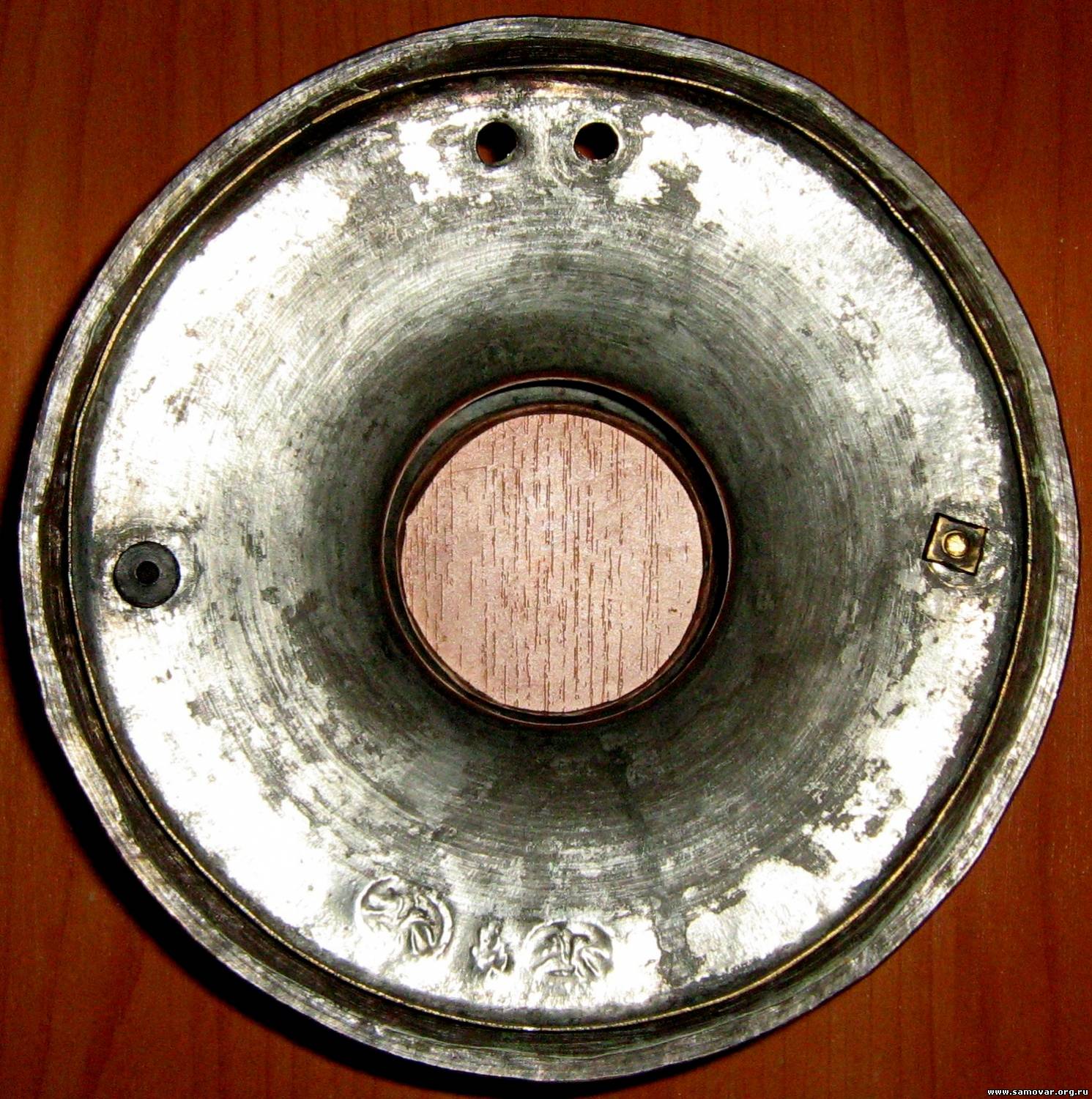 alex350, спасибо за фото. Хотел увидеть, луженая крышка внутри или нет. Пить чай из этого самовара не советую. Неизвестно каким оловом лудили этот самовар. Для чаепития нужен самовар, луженый пищевым оловом. Думаю, что самовар не старый. Лет 10, а может и меньше. Самовар, конечно, ручной работы. А создатель данного произведения - "бог халтуры"