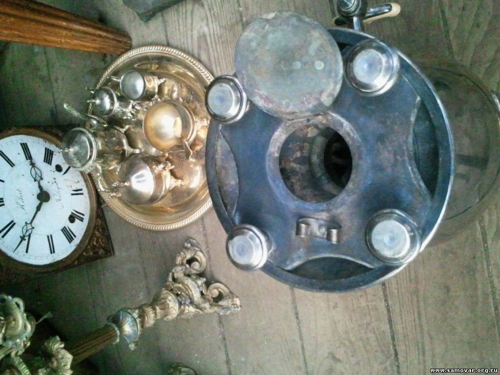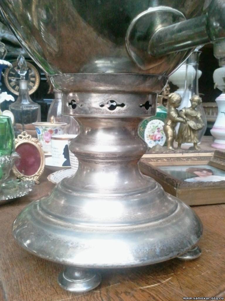 Ув. qwerty, но согласитесь, что она (конфорка) скорее исключение из правил, чем правило. Самовар имеет четко несколько идентификаторов: - ручки; - конфорка; - поддон; - материал (мельхиор посеребрянный).