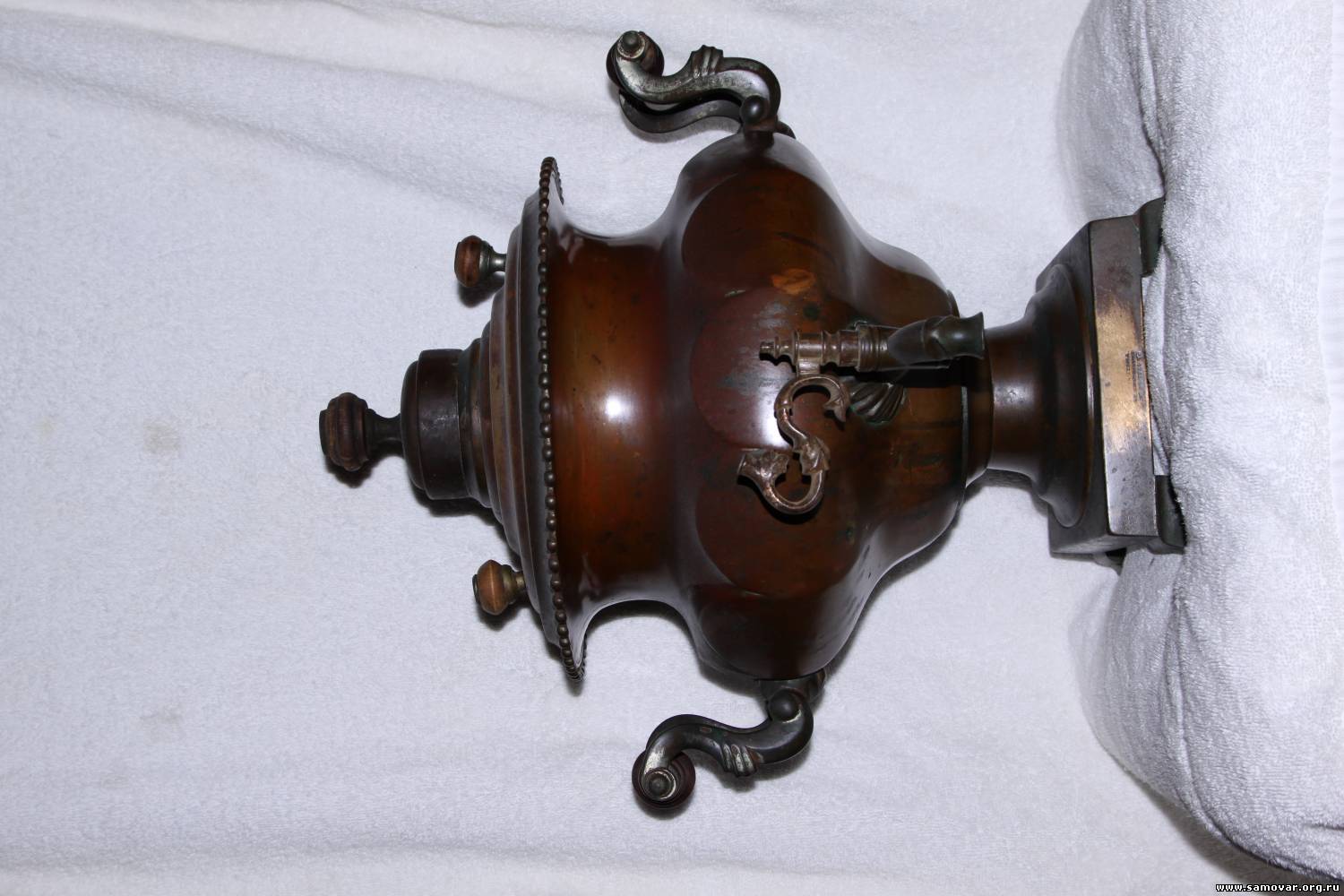 Спасибо. Самовар, представленный Вами, имеет, конечно, некоторые сходства, но и серъезные различия. Просечки, кран, слегка ручки. Репеек не такой, поддон тоже, ... Я, если чесно, не стал бы утверждать НА ОСНОВЕ ПРИВЕДЕННОГО, что самовар ТС - Аленчикова и Зимина. Если взять Воронцова, то есть, по-моему, не меньше общего. Пардон. Время расставит точки. Могли ли такой самовар сделать Аленчиков и Зимин ? Конечно. А Воронцов, Тейле, Баташев ... ,что не смогли бы ?