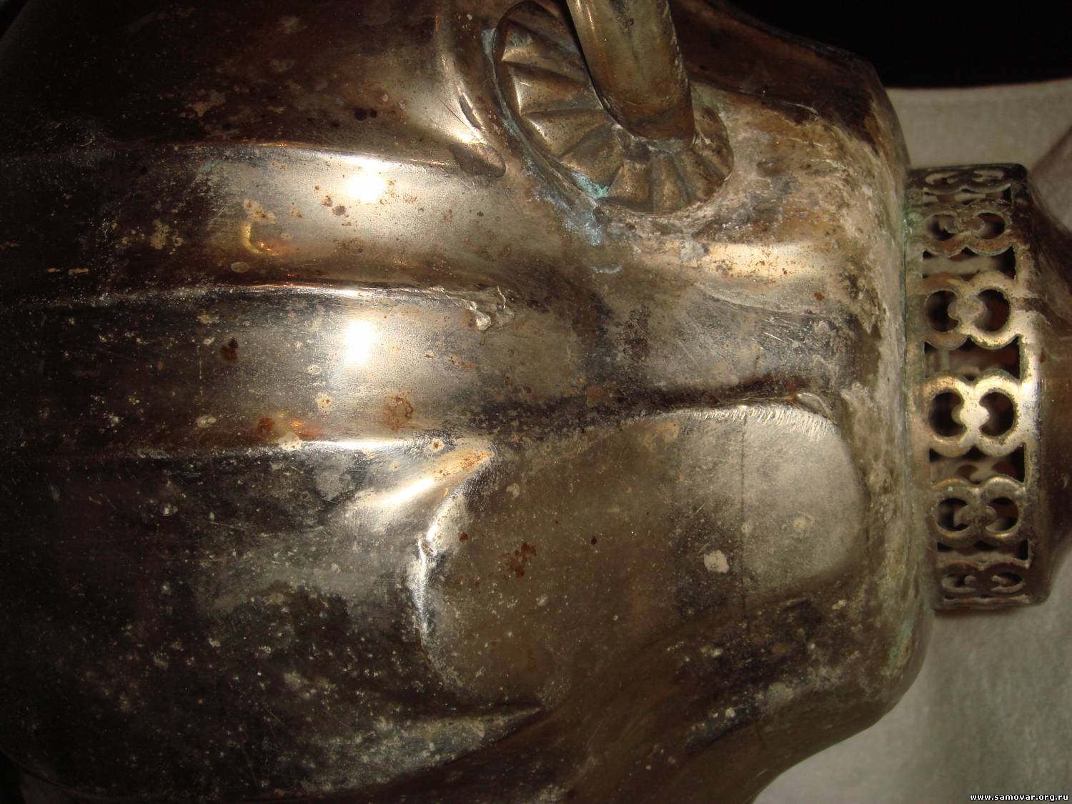 Ув. Alex2, это штрих, нюанс, ..., который о чем-то говорит, безусловно. Практически все граненные самовары имеют этот нюанс (посмотрите граненные рюмки Воронцова, например). Если "углубление" идет до самого низа тулова, то такой "конец" проще всего сделать на кобылине. Если углубление сходит на нет, то четкого завершения может и не быть. Но если какой-то штрих возводится в главный - это правильно, при этом инорируются множество др. ?