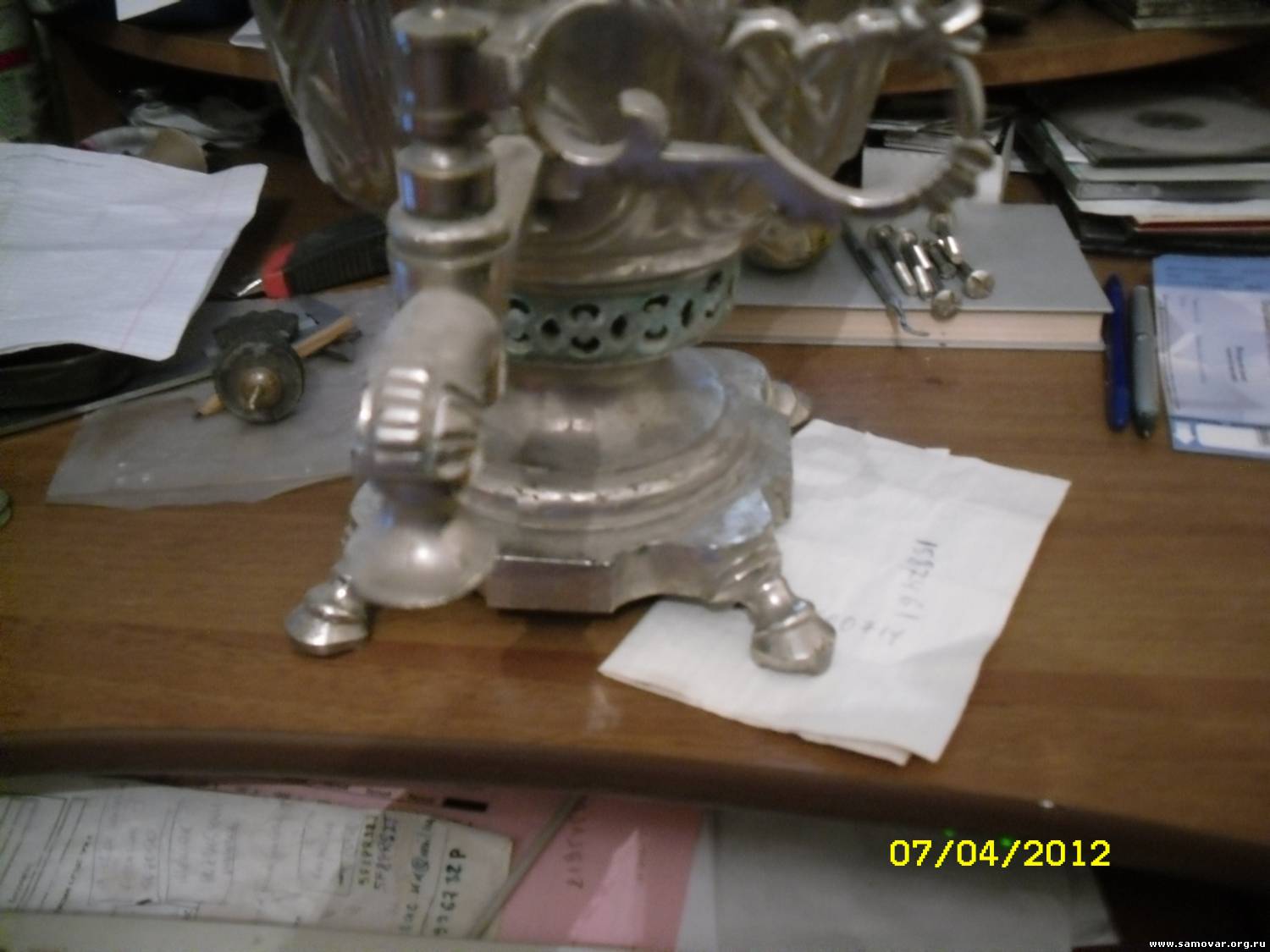 Уважаемый maksimys8, спасибо за фото, но давайте так... Я, заметьте выставил фото клейма, потом самовар. На вашем самоваре есть клеймо? Прошу фото вставить. А вот веток таких у Капырзина ни разу не видел... Самовар литра на два? |