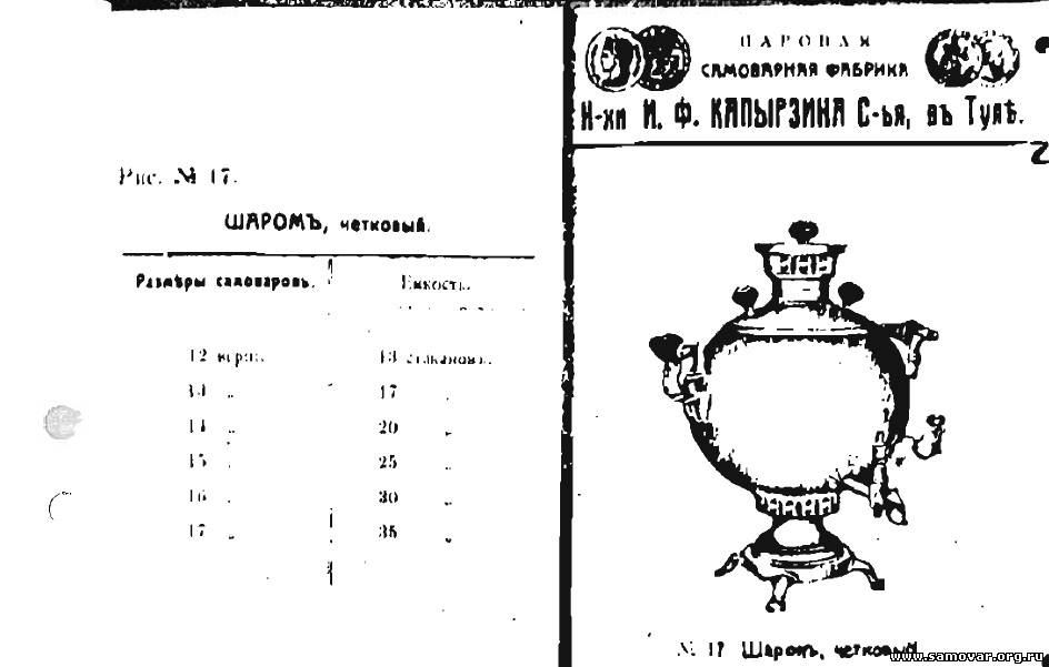 Вот продают самовар-шарик "на 3-4 литра. Высота с конфоркой >35 см" . "Шаром четковый", согласно каталога. Не знаю, можно ли так делать на этом форуме, давая ссылку на чужой продаваемый самовар. Но.. по теме вообще-то. тут же каталог создается Если что, модератор пусть удалит или оформит дОлжным образом. http://www.samovar.org.ru/forum/6-2106-1 Извините, я тут новенькая