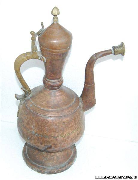 Попался мне вот такой красномедный кумган. Высота 40 см. Не течет. Все дефекты - несколько не больших вмятинок. Есть клеймо (не полное и подтертое) Николай Маликов. Не уж то он производил и такие вещи? Извините, что фото клейма нет, т.к. уж больно мелкое и мой сотик его не берет. Уважаемые форумчане подскажите от какой суммы я могу отталкиваться при продаже данного экземпляра.