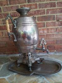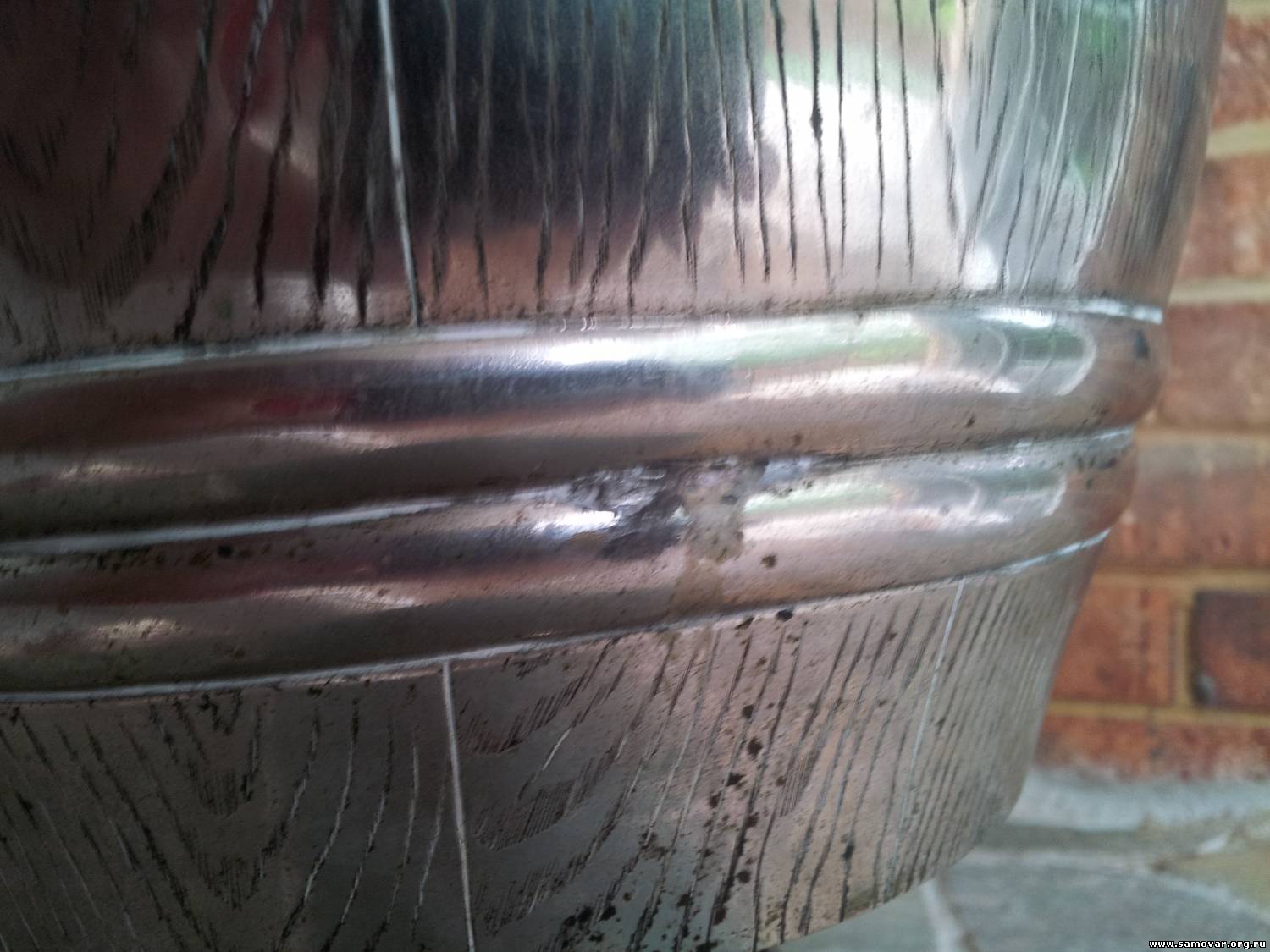 Не путайте весовой самовар с ценовым. Металл на этом самоваре очень прочный. Сказать что это за сплав не представляется возможным. Более тяжелые самовары очень часто имеют повреждения и вмятины. На этом же самоваре только пара еле различимых вмятинок.