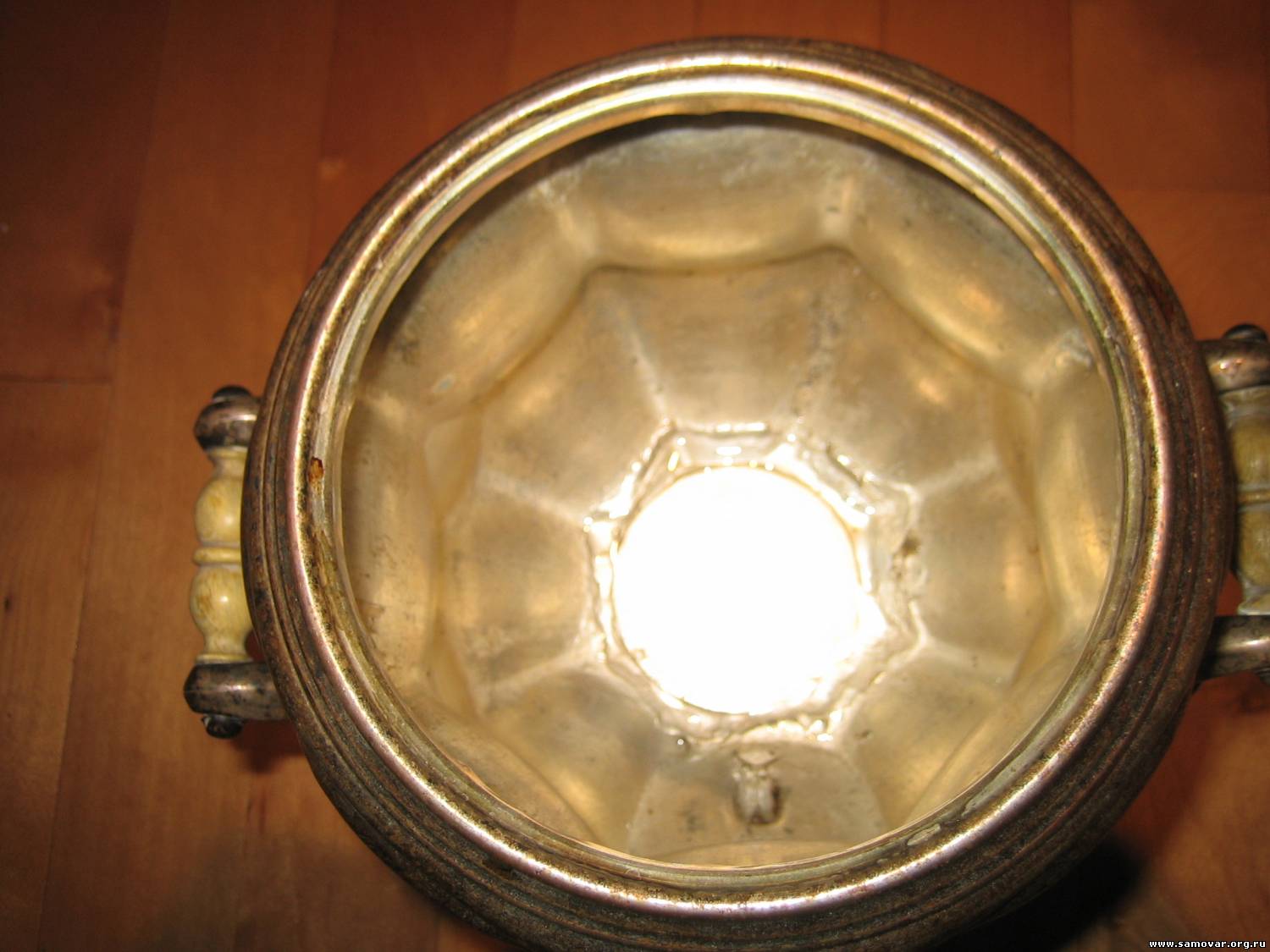 Подозрение, что это самовар тоже было Почему и попросил фото снизу (разные ракурсы). Слово за kasbuba. Видимо отсутствует (за ненадобностью) пластина внизу, на которой и было клеймо. |