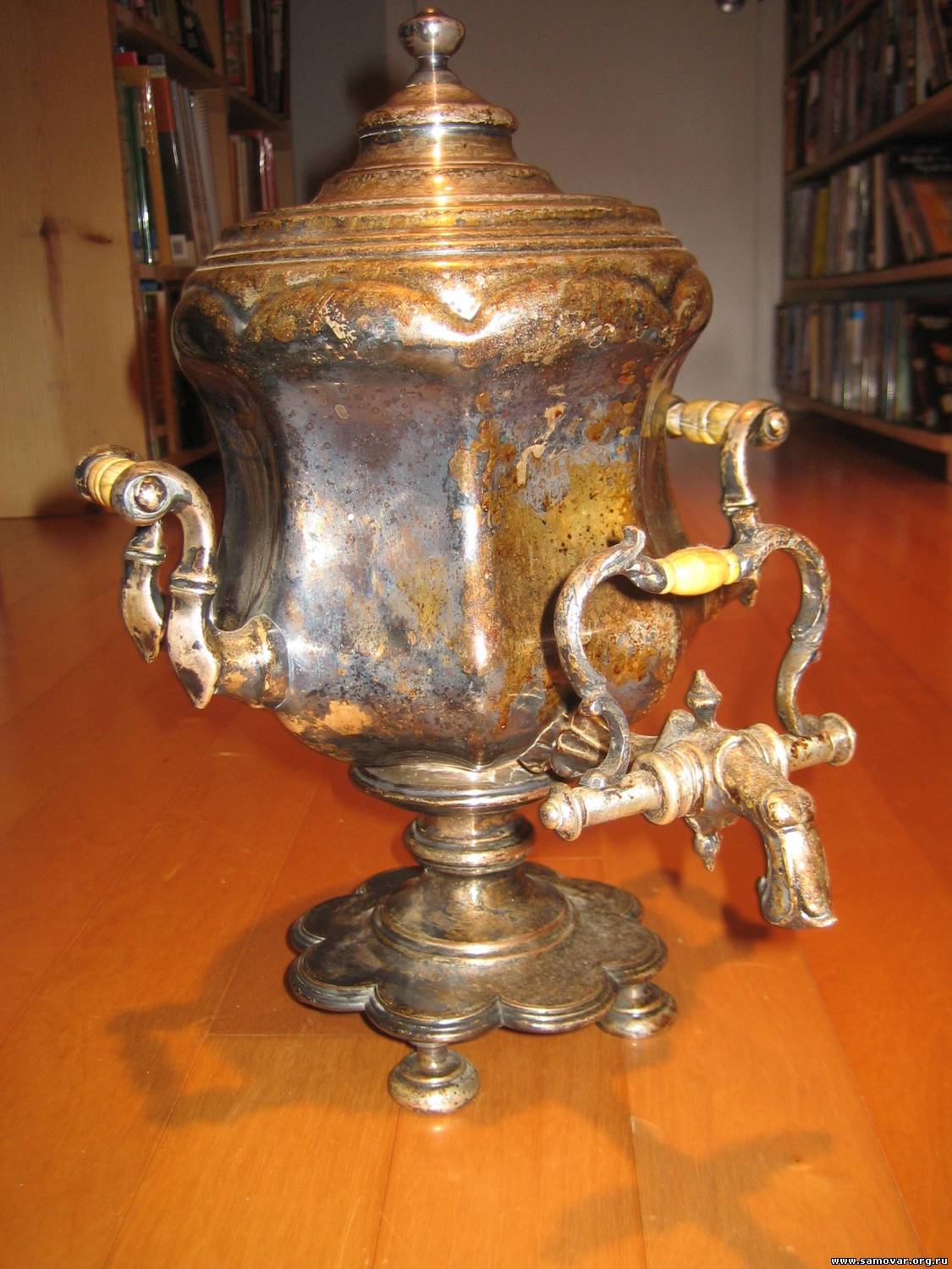 Показали тут вот такой экземплярчик. Сохранность - не 100%, сверху около крышки подерябано серебрение, макушка крышки - не родная, насчет крана - не уверен, что родной, но судя по пайке внутри или хорошо сделали или таки - родной. Да - внутри - лужение оловом, что обычно не характерно для английских экземпляров.