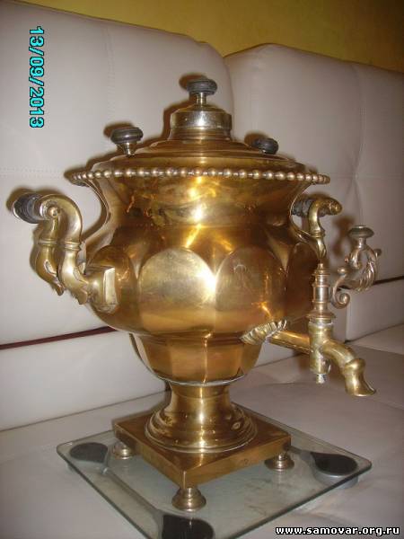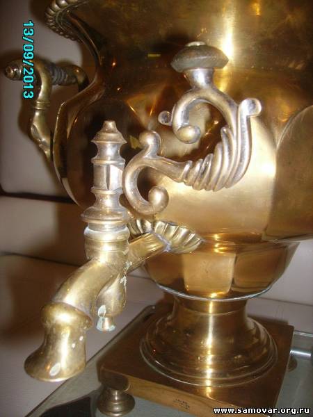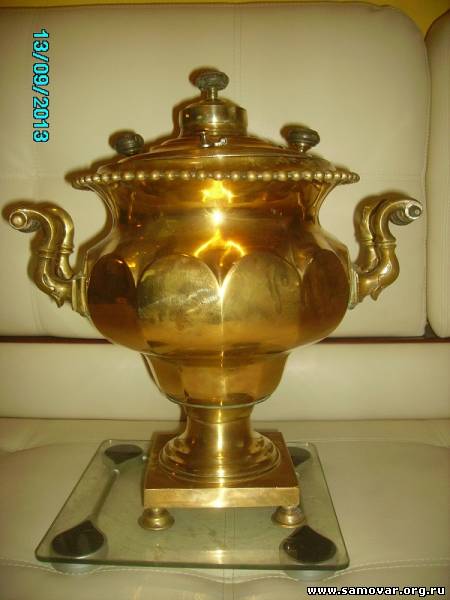 | Группа: Проверенные Сообщений: 1688 Статус: Offline | Самовар ваза томпаковая безподдувальная Якова Чегинского.Обьем 8 литров.высота 45 см по кончик трубы,и 43 см ширина по ручкам.Трещин и паек нет.Вмятины отсутствуют.Колосник не родной,видимо меняный.нет конфорки и не родная заглушка на трубу.буду признателен за помощь в оценке.Заранее спасибо..