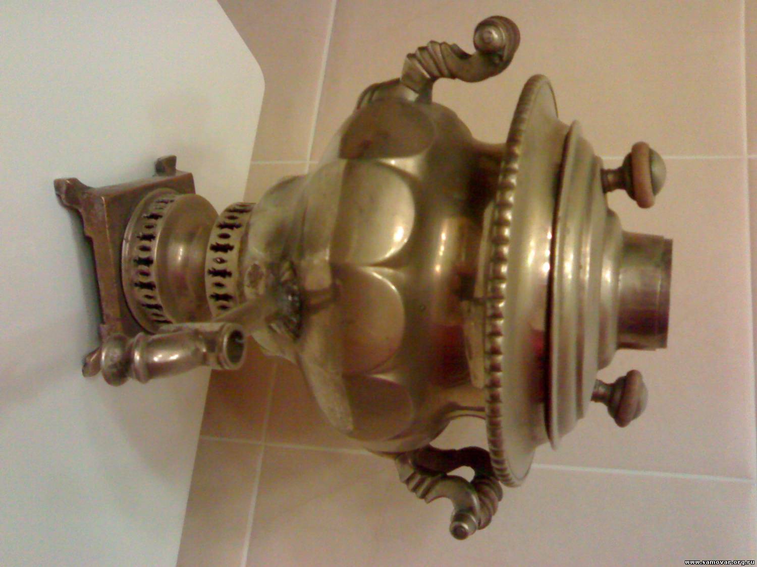 Quote (Osnovatel) Морально готов к любому вердикту :- Самовар русский. Крышка не от этого самовара. Вероятно восточная (Турция , Иран). Посмотрите на поддон самовара. Такое впечатление что в некоторых местах сошла никелировка. Это так? Кран паяли заново. Родной-ли он, по фотографии не могу сказать. |