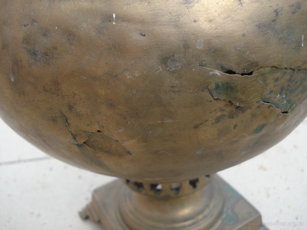 Цитата oreshek (  ) было бы интересно запаять трещины изнутри, отполировать, но после этого снова покрыть патиной, более менее равномерной искусственное темнение не стоит делать. После реставрации время само покроет патиной самовар.