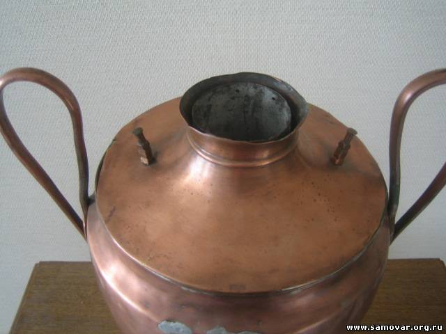 Добрый день ,уважаемые !!! Подскажите пожалуйста , кто производитель этого самовара . Примерные годы выпуска и ориентировочную стоимость его в таком виде . Высота до верхнего края ручек - "ушей " 47 см . Клейма нет , и похоже и не было . Только на квадратном основании сзади с торца набиты цифры 95 . Колосник расколот на 4 части . На тулове спереди две трещины по 2 см . каждая .Запаяны снаружи очень неаккуратно , поэтому и кажутся значительно больше . Сзади в таком же месте , почти у крышки ,трещинка 1 см . Конфорка утрачена .