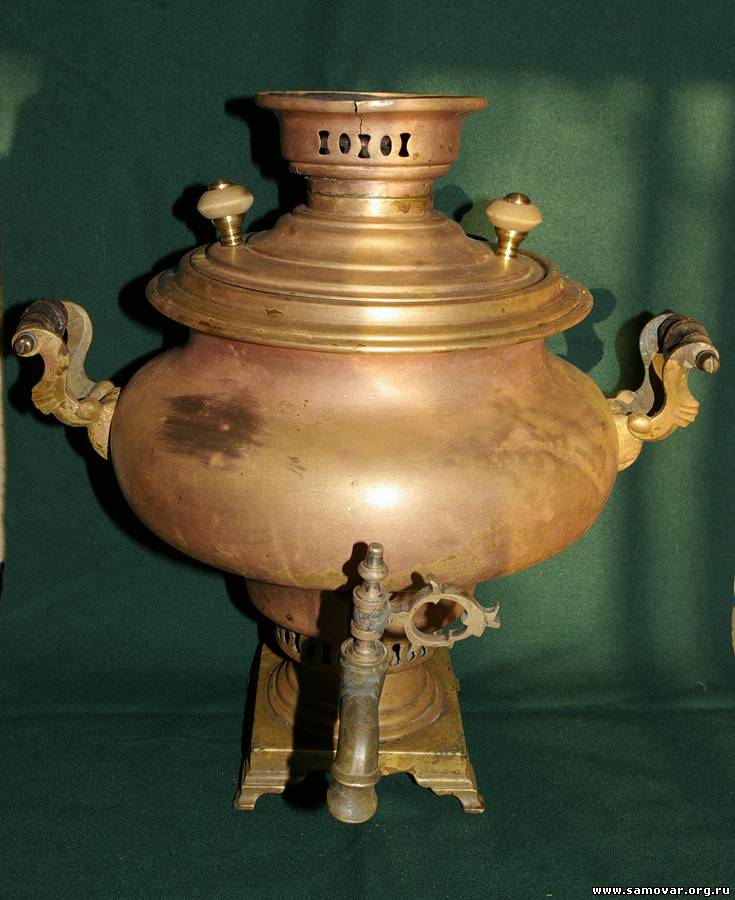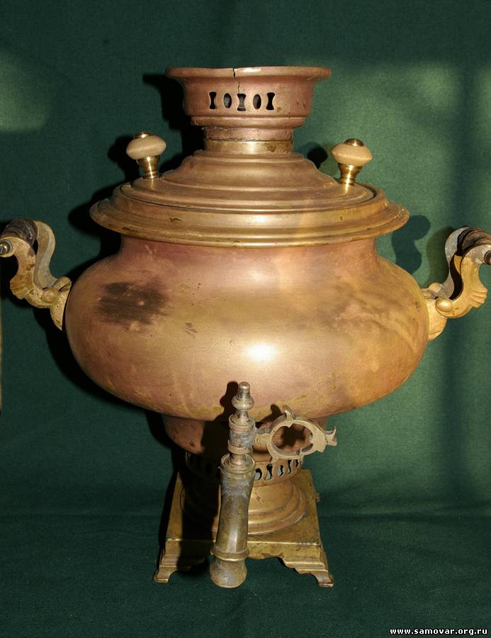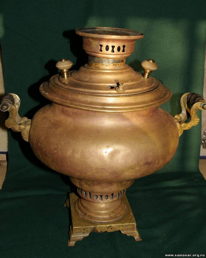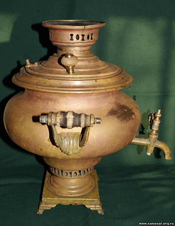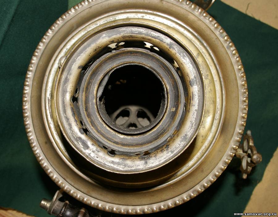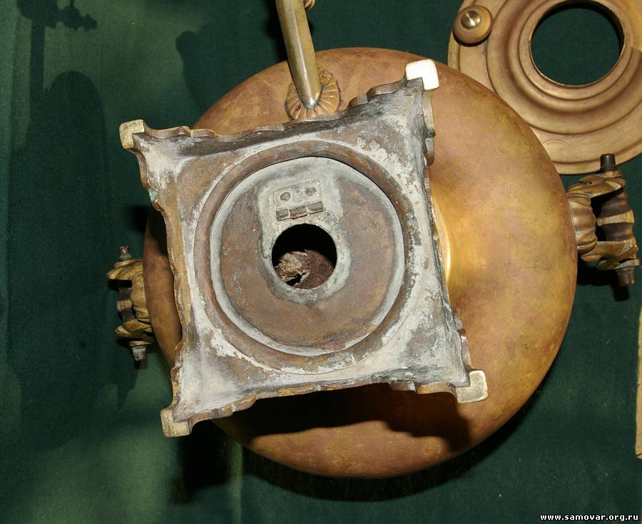 Кислота, которой этот самовар обрабатывали, по-разному действует на литые и не литые детали, по-этому отличается цвет. Если кувшин цельный, крышка должна быть высокая. Конфорка была обязательно. Обычно крышки бывают как на первом и втором самоварах