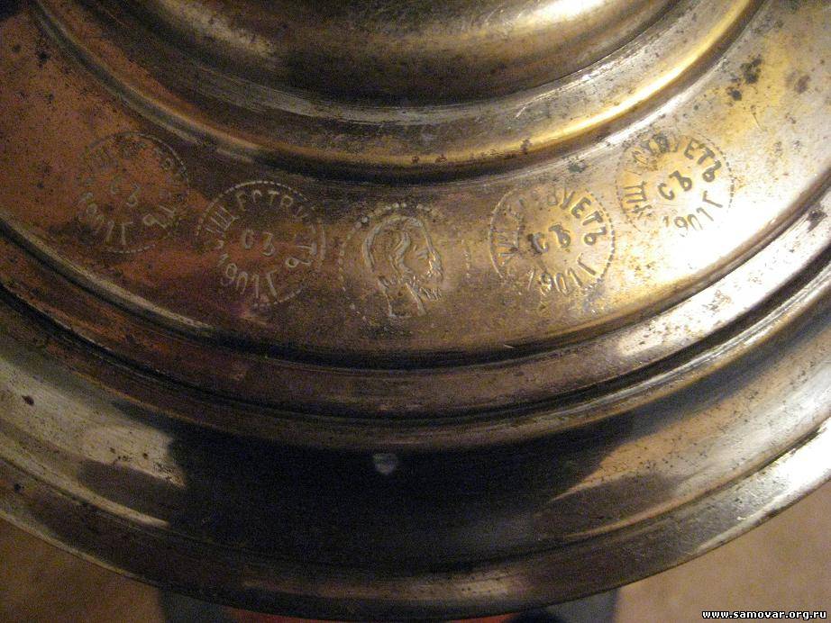 Видимо, самовар сделан после 1917 года. Без фамилии, только год основания фабрики |